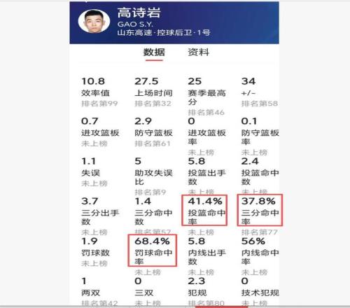 广东队也有个“高铁”比山东高铁更离谱,三项命中率均低高诗岩
